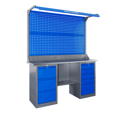 Самые компактные верстаки с глубиной столешницы 500 мм. Благодаря небольшой глубине, такие верстаки легко размещаются в ограниченных пространствах, например, в гаражах, мастерских и тд. Несмотря на компактные размеры, верстаки могут быть оснащены полками, ящиками и держателями для инструментов, что помогает поддерживать порядок и быстро находить нужные предметы.