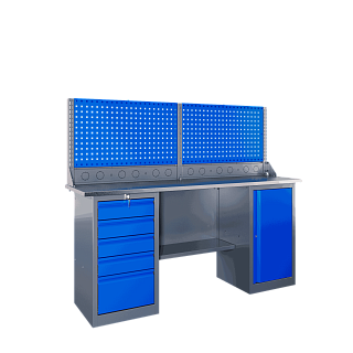 Самые компактные верстаки с глубиной столешницы 500 мм. Благодаря небольшой глубине, такие верстаки легко размещаются в ограниченных пространствах, например, в гаражах, мастерских и тд. Несмотря на компактные размеры, верстаки могут быть оснащены полками, ящиками и держателями для инструментов, что помогает поддерживать порядок и быстро находить нужные предметы.