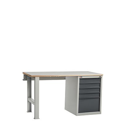 Верстак слесарный на опоре и тумбе со стяжкой. Тумба ВЛ-015 с 5 ящиками. Максимальная нагрузка на ящик — 60 кг.