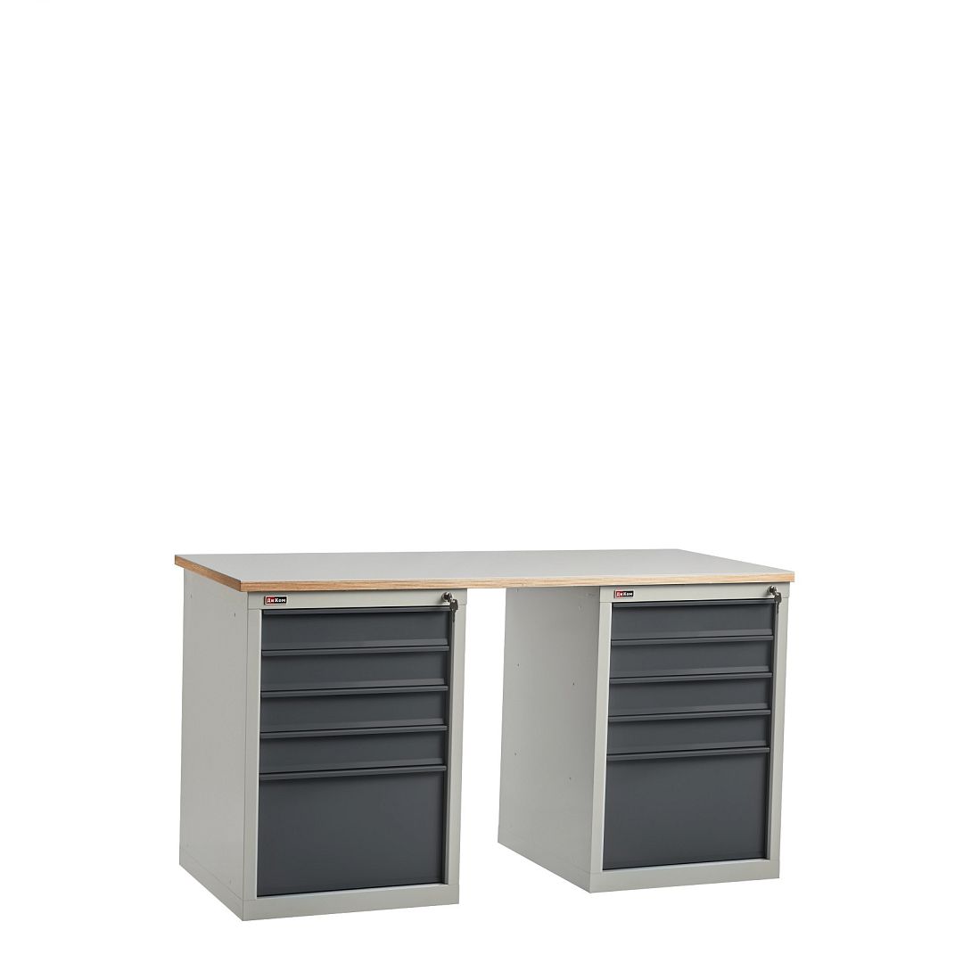 Верстак слесарный на двух тумбах. Тумба ВЛ-015 с 5 ящиками. Максимальная нагрузка на ящик — 60 кг.