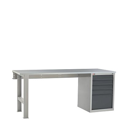 Опора, корпус и ящики тумбы сварные, что обеспечивает жёсткость и устойчивость верстака.