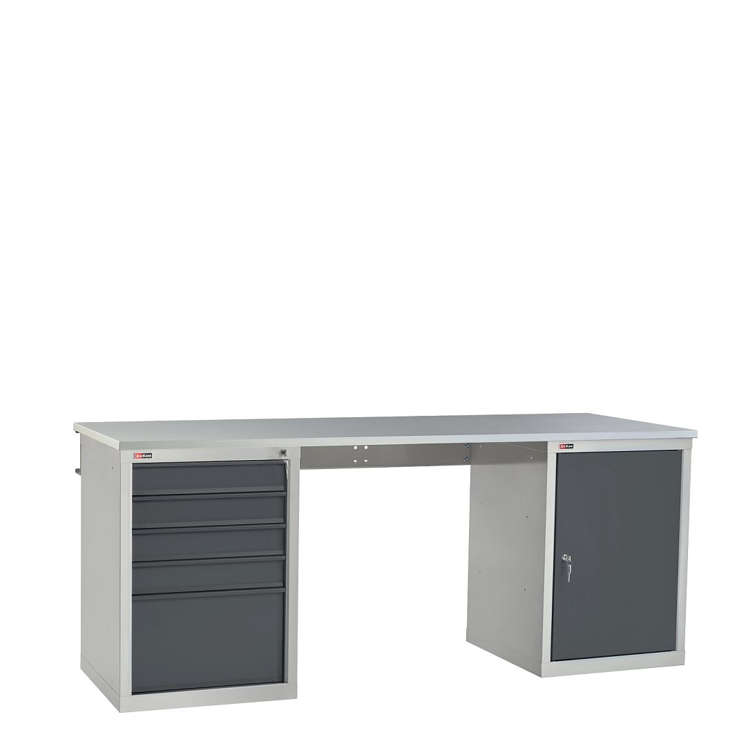 Корпуса и ящики тумб сварные, что обеспечивает жёсткость и устойчивость верстака.