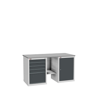 Слесарный верстак на двух тумбах ВЛ-К-015 и ВЛ-К-010. Полка-стенка в комплекте.