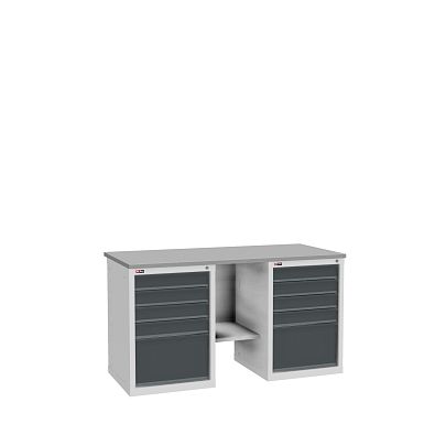 Слесарный верстак на двух тумбах ВЛ-К-015. Полка-стенка в комплекте.
