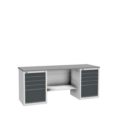 Слесарный верстак на двух тумбах ВЛ-К-015. Полка-стенка в комплекте.