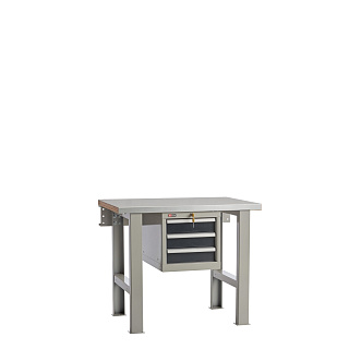 Верстак слесарный на двух опорах со стяжкой и подвесной тумбой с 3 ящиками.
