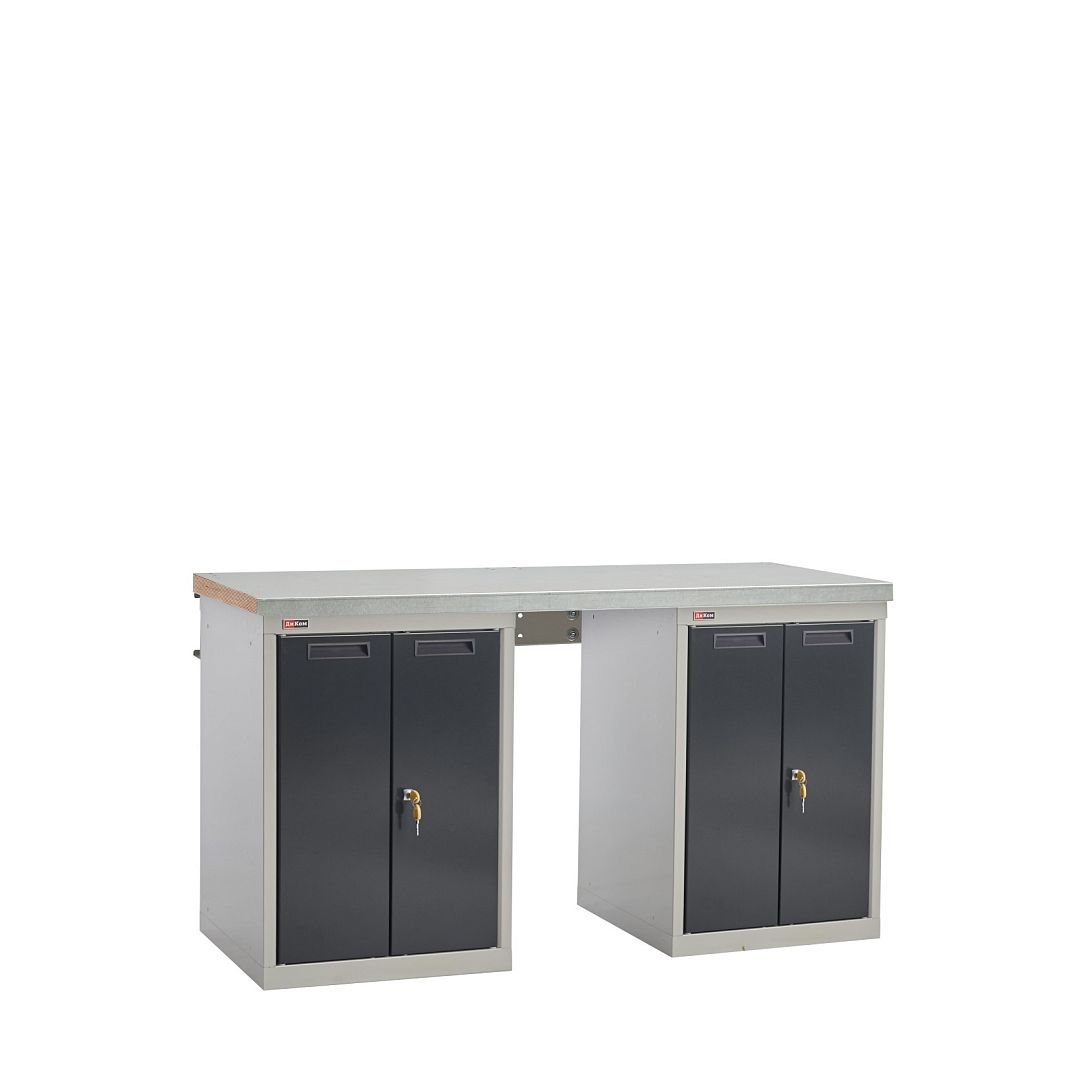 Верстак слесарный на двух тумбах со стяжкой. Тумба ВС-010 с распашными дверцами (без полок).