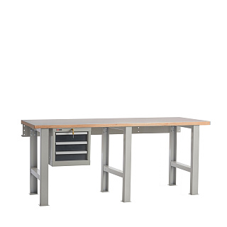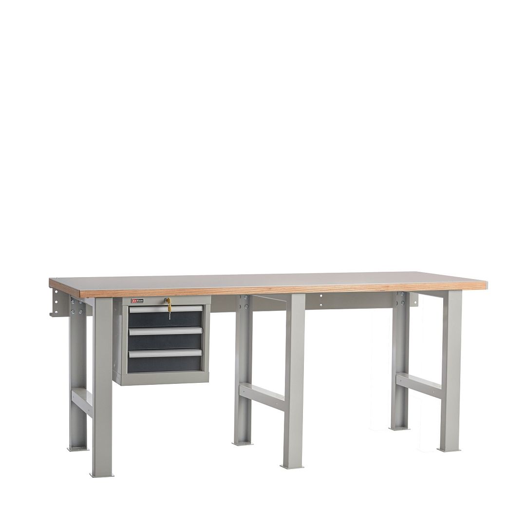 Верстак слесарный на трёх опорах со стяжкой и подвесной тумбой с 3 ящиками.