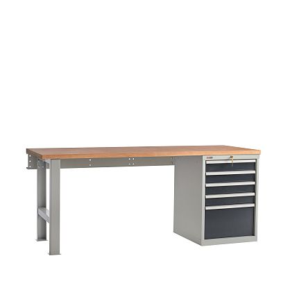 Опора, корпус и ящики тумбы сварные, что обеспечивает жёсткость и устойчивость верстака.
