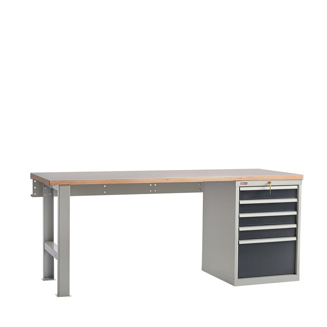 Верстак слесарный на опоре и тумбе со стяжкой. Тумба с ящиками.