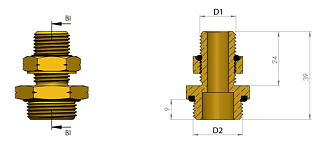Муфта переборочная тип1 НР М22x1,5мм с ВН М16x1,5мм - НР М16x1,5мм с гайкой, латунь