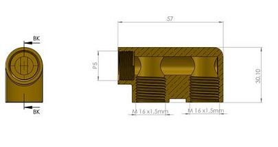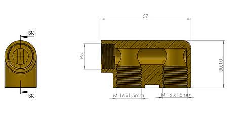 Тройник F-образный шарнирный, ВН М16x1,5мм - ВН М16x1,5мм - Р5, латунь