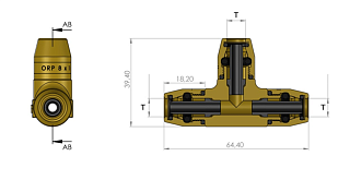 Тройник Т-образный под трубку D10x1,0мм, латунь