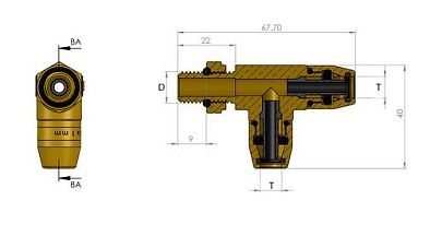 Тройник вертикальный L-образный со сгоном НР М16x1,5мм-D8х1,0мм-D8х1,0мм, латунь