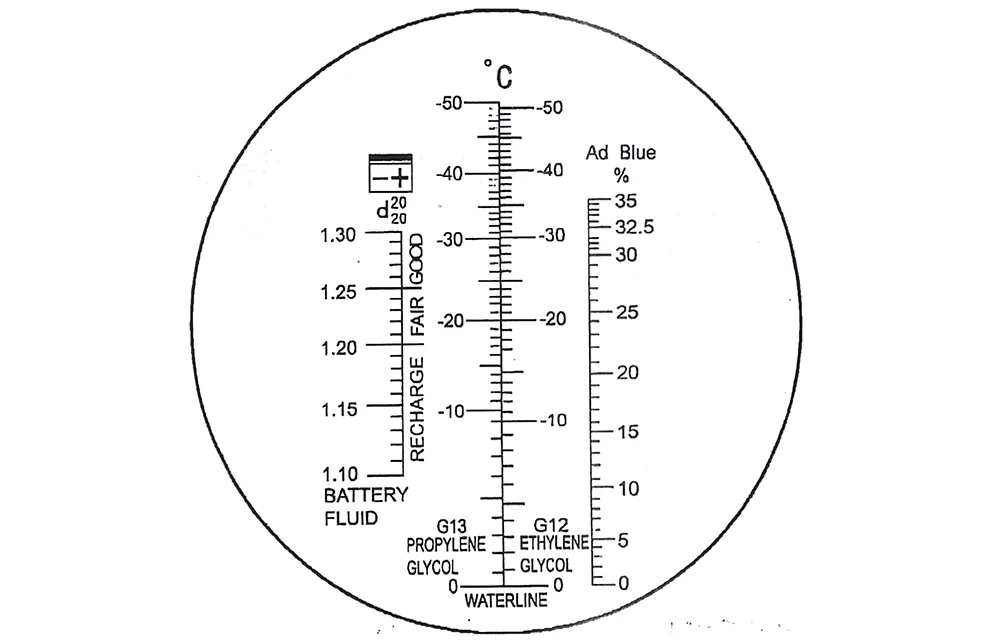 - Рефрактометр антифриза прост в эксплуатации, имеет легко читаемые шкалы. Требуется всего 2 или 3 капли образца.