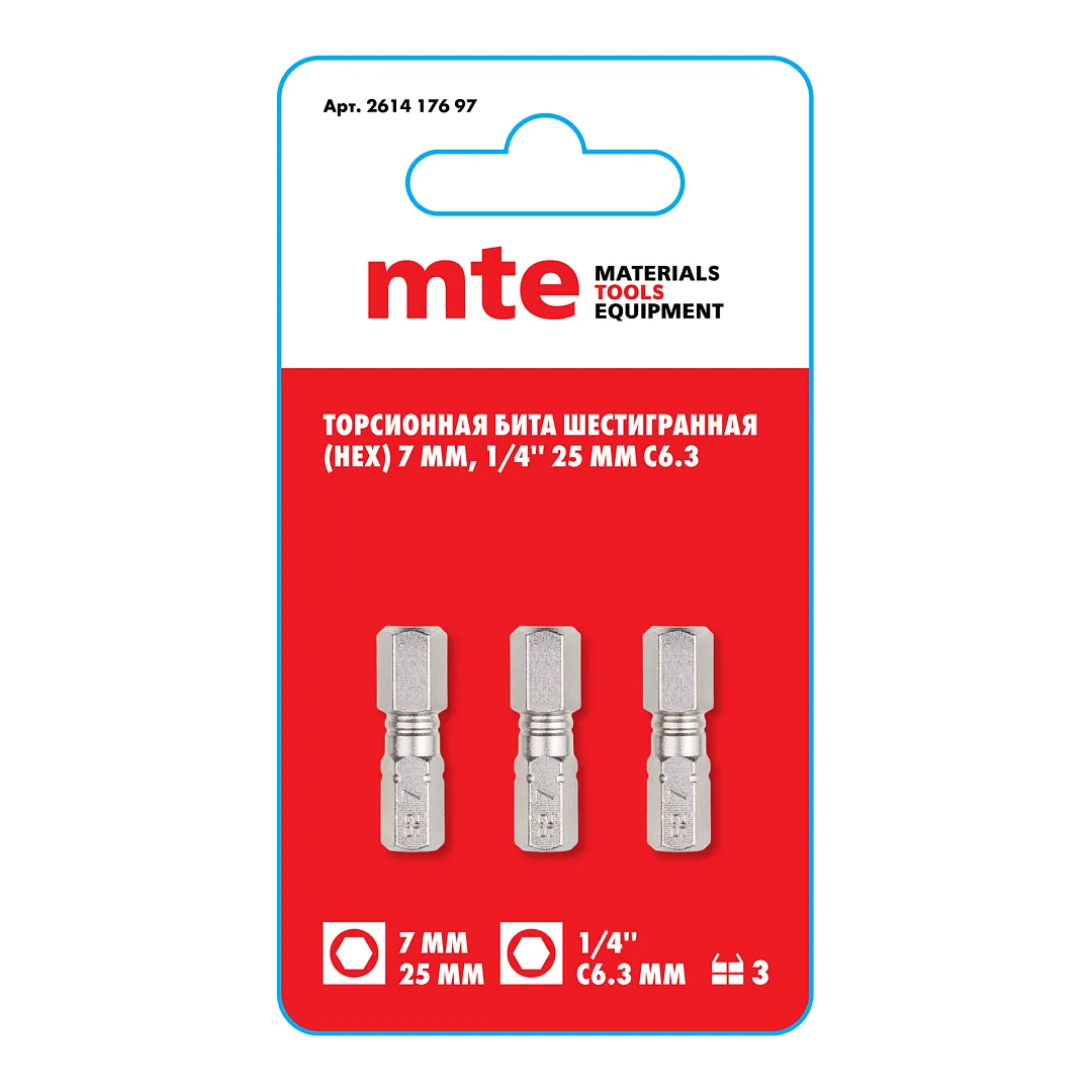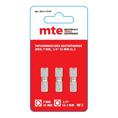 Бита шестигранная HEX 7 мм 25 мм хвостовик С6,3 мм торсионная mte