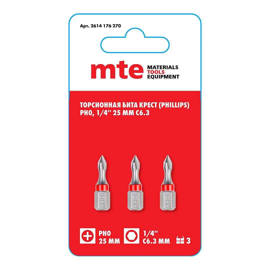Бита PH0 25 мм хвостовик С6,3 мм торсионная mte