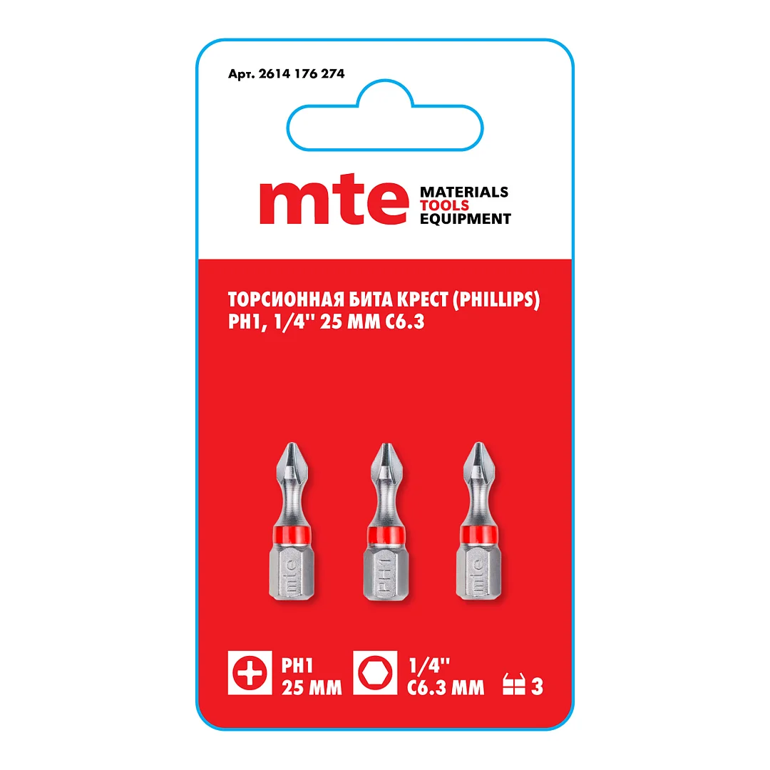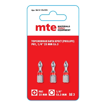 Бита PH1 25 мм хвостовик С6,3 мм торсионная mte
