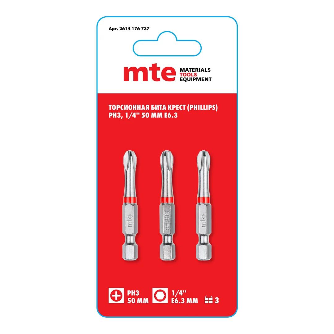 Бита PH3 50 мм хвостовик E6,3 мм торсионная mte