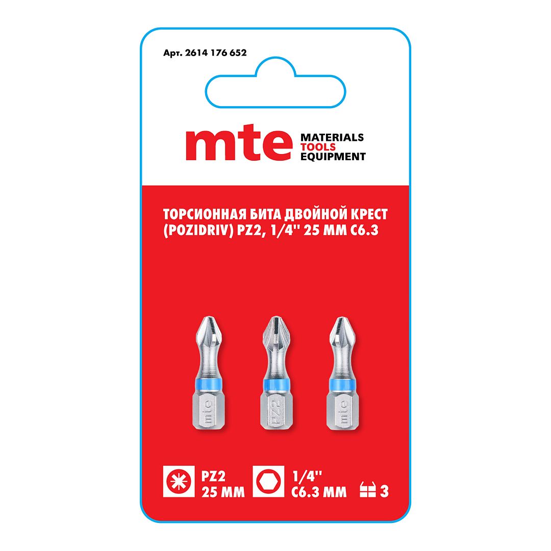 Бита PZ2 25 мм хвостовик С6,3 мм торсионная mte