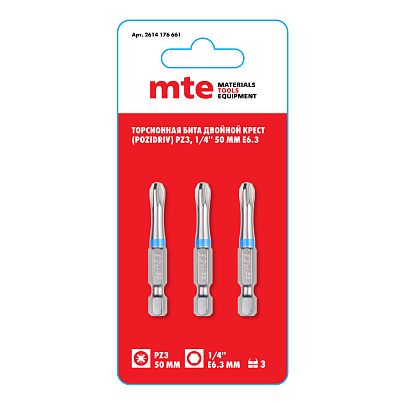 Бита PZ3 50 мм хвостовик E6,3 мм торсионная mte
