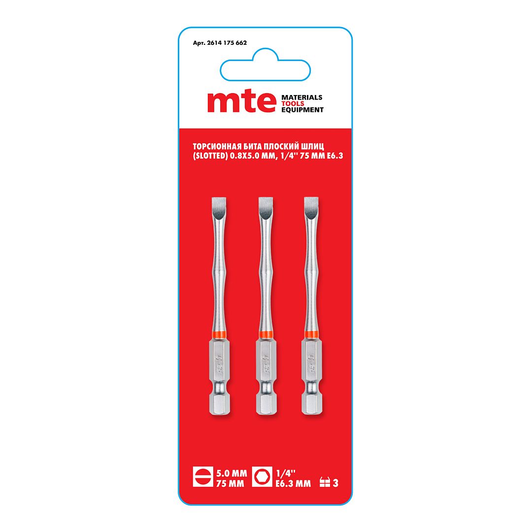 Торсионная бита 75 мм SL 0.8X5.0 мм, mte