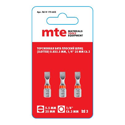 Торсионная бита 25 мм SL 0.8X5.5 мм, mte