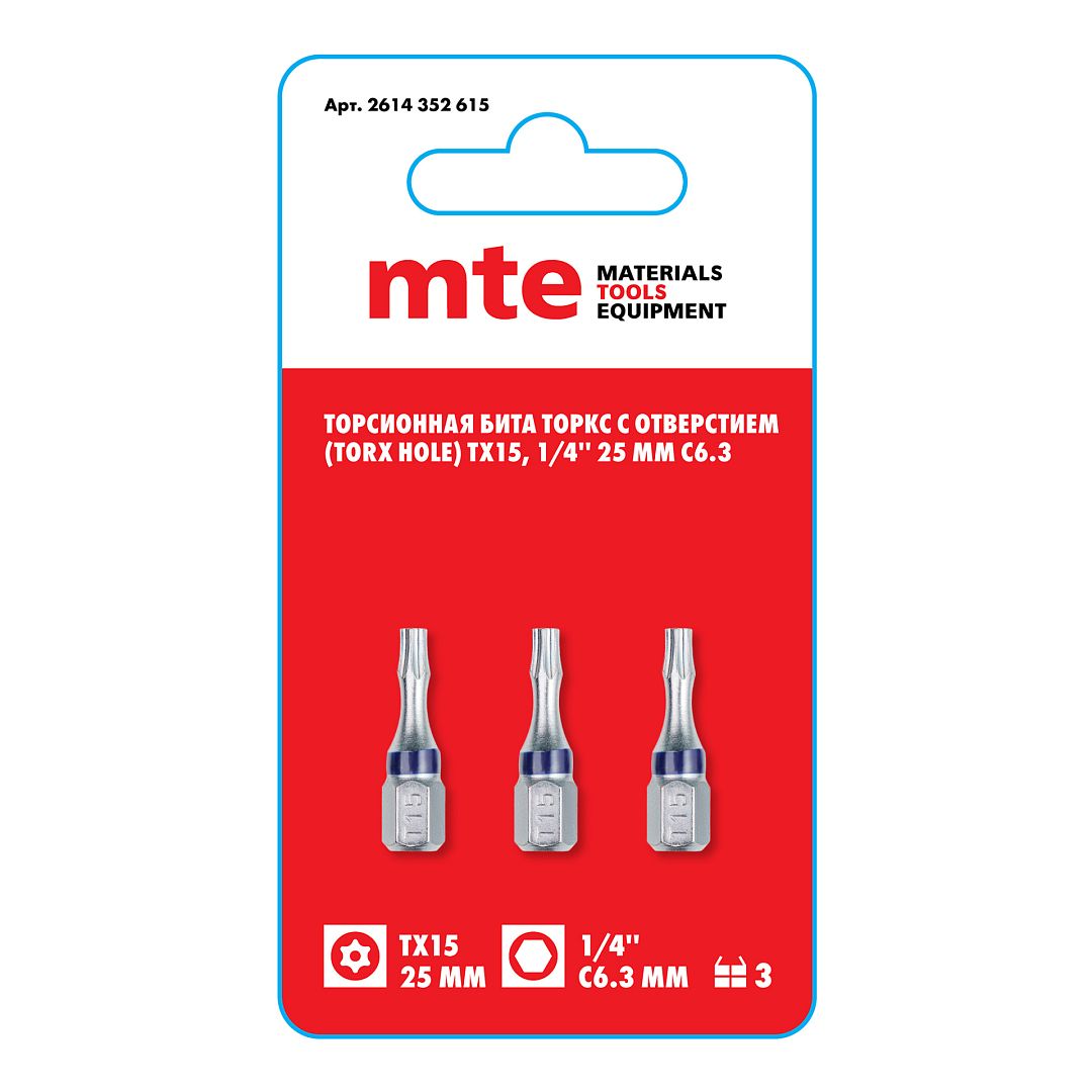 Бита Торкс c отверстием T15Н 25 мм хвостовик С6,3 мм торсионная mte