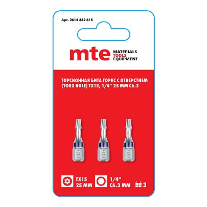 Торсионная бита 25 мм TX 15 с отверстием, mte
