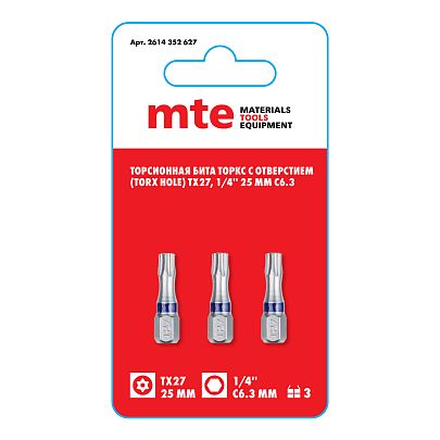 Торсионная бита 25 мм TX 27 с отверстием, mte