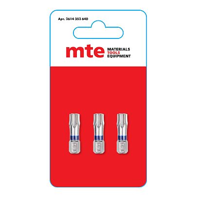 Бита с профилем TORX Hole (торкс - шестилучевая звезда c отверстием) TX40, длина 25 мм, хвостовик С6,3 мм, торсионная, MTE
