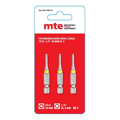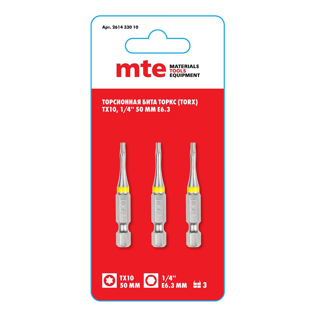 Бита Торкс T10 50 мм хвостовик E6,3 мм торсионная mte