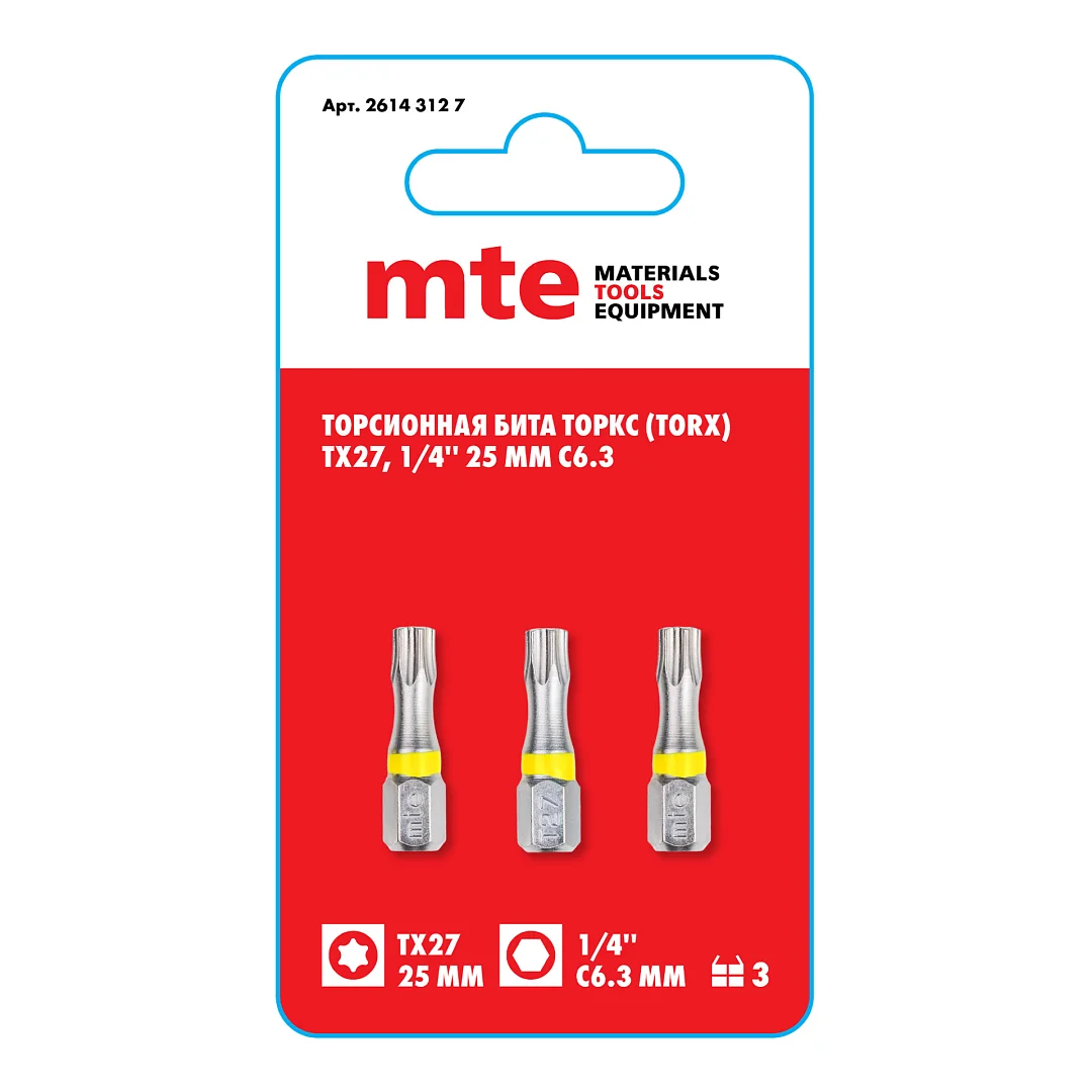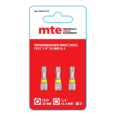 Бита Торкс T27 25 мм хвостовик С6,3 мм торсионная mte