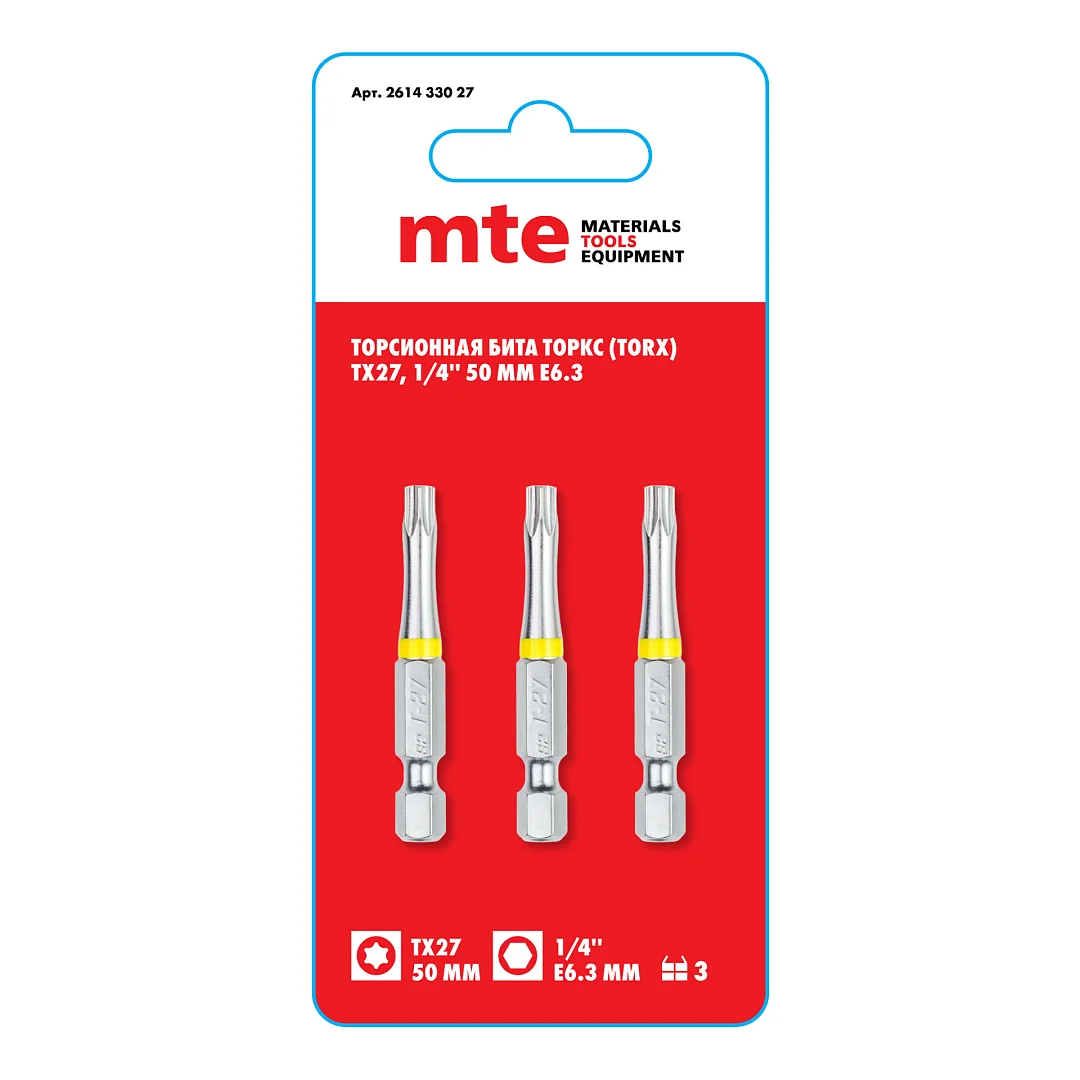 Бита Торкс T27 50 мм хвостовик E6,3 мм торсионная mte