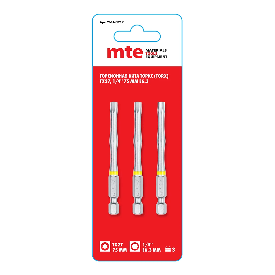 Бита Торкс T27 75 мм хвостовик E6,3 мм торсионная mte