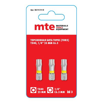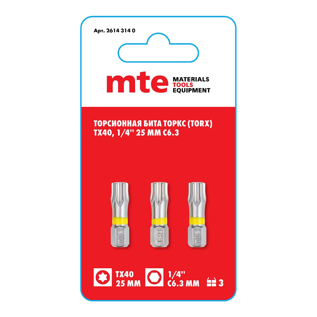 Бита с профилем TORX (торкс - шестилучевая звезда) TX40, длина 25 мм, хвостовик С6,3 мм, торсионная, MTE