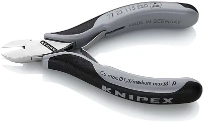 Бокорезы для электроники ESD для мягкой проволоки длина 115 мм Knipex