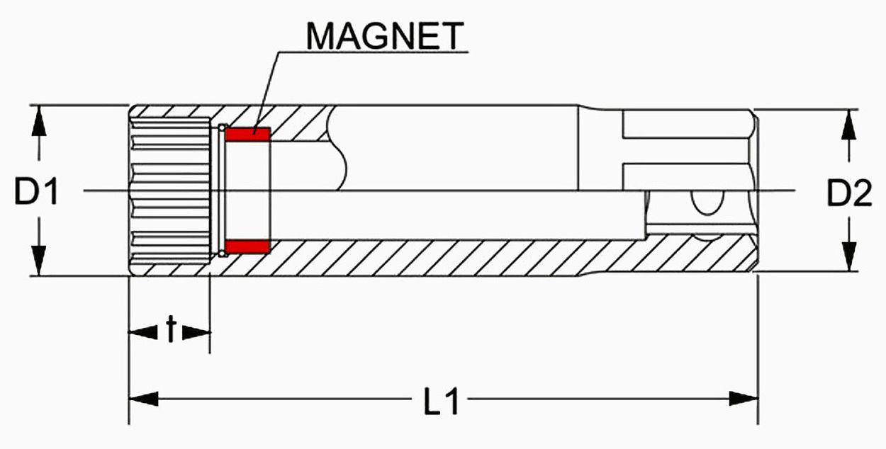 Накидная часть: 3/8", канавка для шариковой защелки, шестигранная головка размера 17