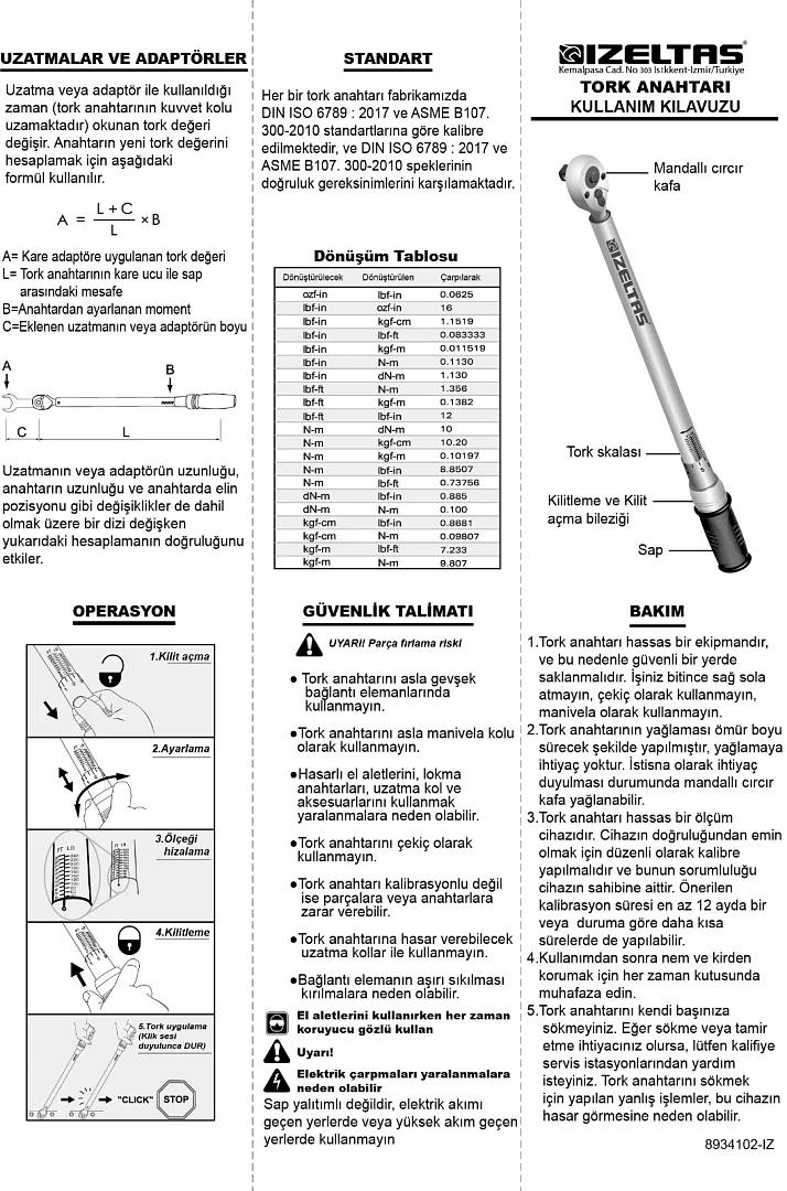 Изготовлен в соответствии с требованиями стандартов качества TS EN ISO 6789-1 TS EN ISO 6789-2.