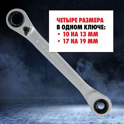 Четыре наиболее ходовых размера в одном ключе - 10 ,13, 17 и 19 мм.