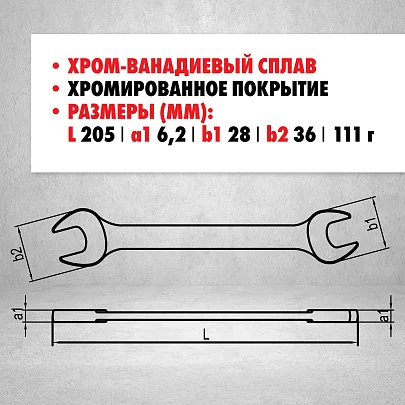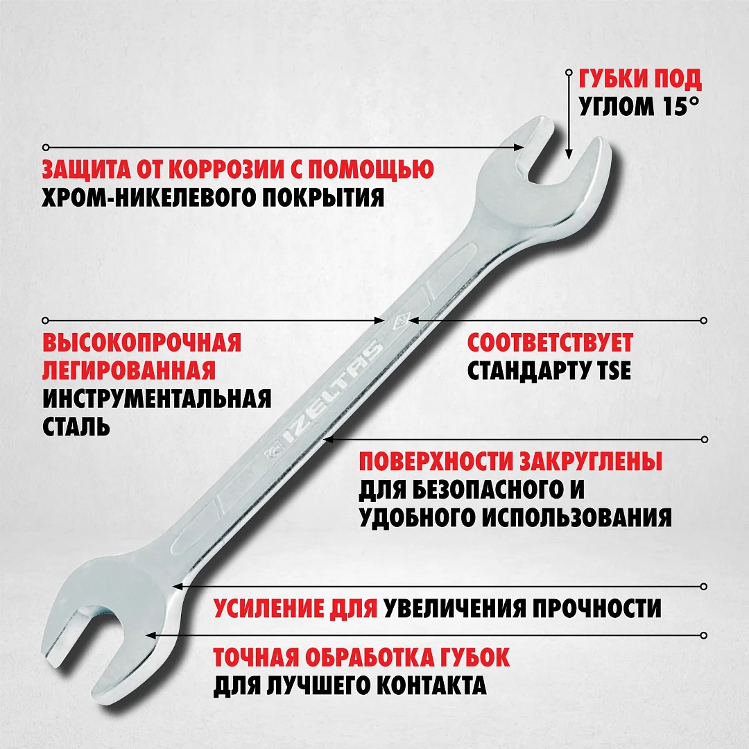 Удлинённый рожковый ключ IZELTAS, двухсторонний 13 мм × 17 мм