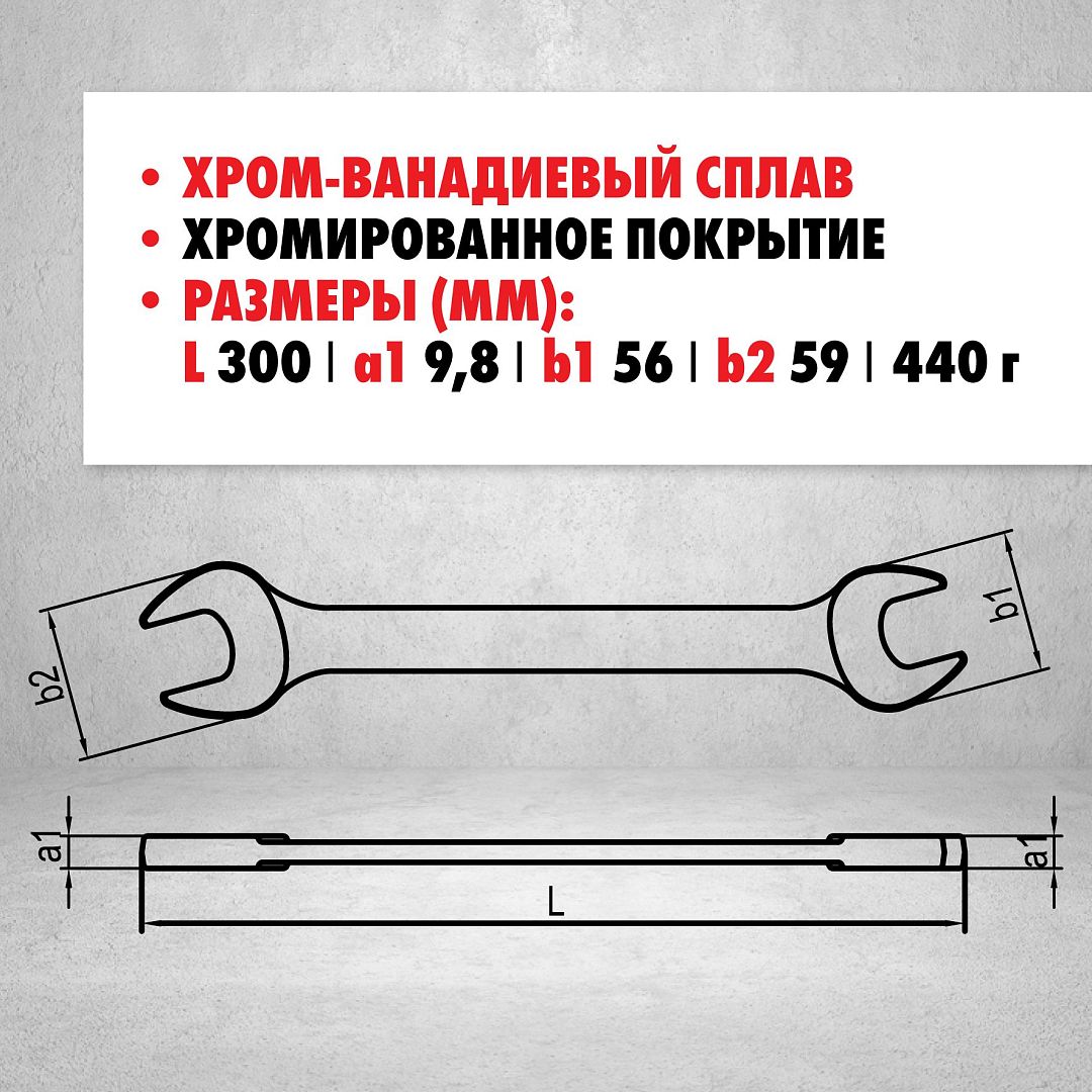 Удлинённый рожковый ключ IZELTAS, двухсторонний 27 мм × 30 мм