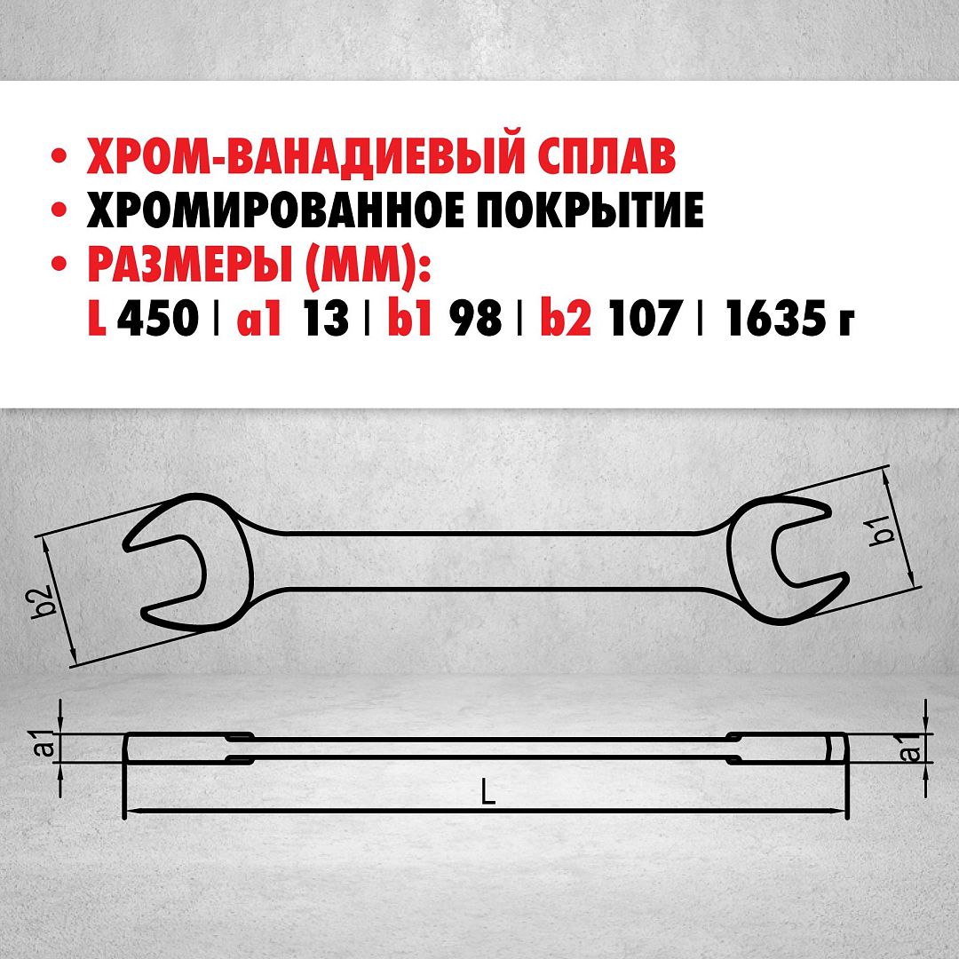 Удлинённый рожковый ключ IZELTAS, двухсторонний 46 мм × 50 мм