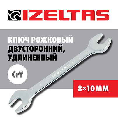 Ключ рожковый двусторонний, удлиненный 08х10 мм, IZELTAS, 0130010810, 13000000060
