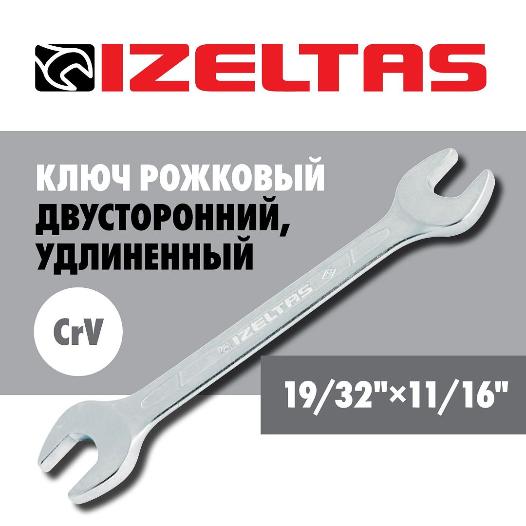 Рожковый ключ IZELTAS дюймовый, удлинённый sae, двухсторонний 19/32 дюйма × 11/16 дюйма