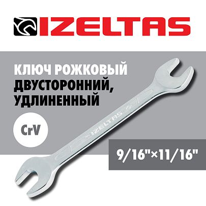 Ключ рожковый двусторонний, удлиненный 9/16"х11/16" SAE IZELTAS, 0161011417, 13000000145