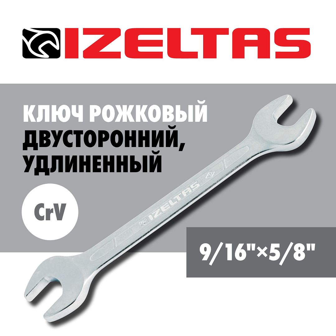 Ключ рожковый двусторонний, удлиненный 9/16"х5/8" SAE IZELTAS, 0161011416, 13000000144