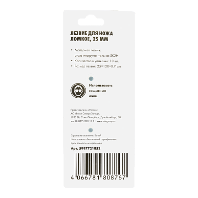 ЛЕЗВИЕ ДЛЯ НОЖА ЛОМКОЕ 25ММ