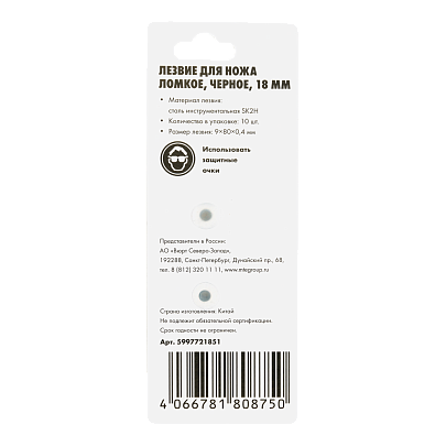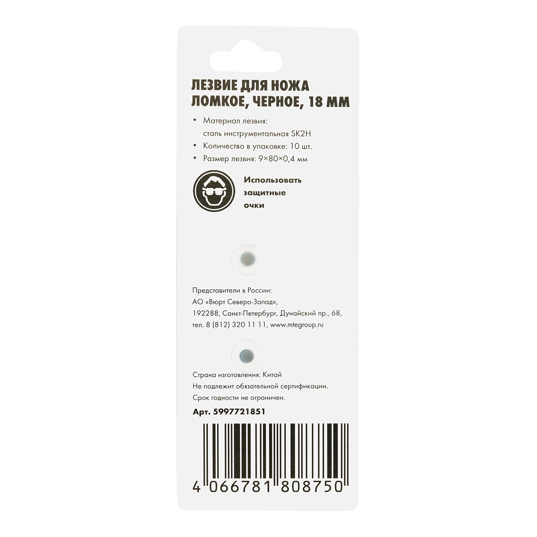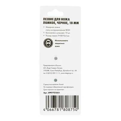 ЛЕЗВИЕ ДЛЯ НОЖА ЛОМКОЕ ЧЕРНОЕ 18ММ