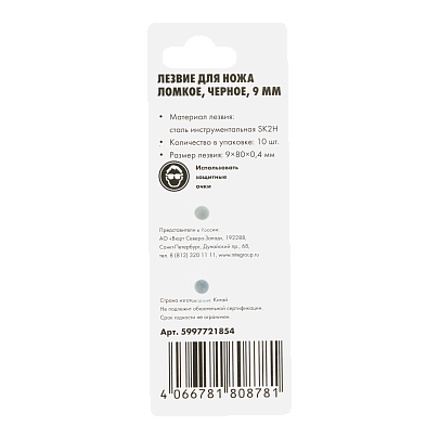 ЛЕЗВИЕ ДЛЯ НОЖА ЛОМКОЕ ЧЕРНОЕ 9ММ